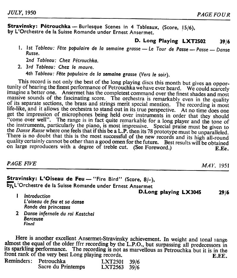 Decca ACL 31 1958/9 LP/1958 matrices: ARL 222 -1DR / ARL 223 -2DR Rec: Oct.1950 (Fire Bird) -&- 29-30 Nov 1949 - Victoria Hall, Geneva